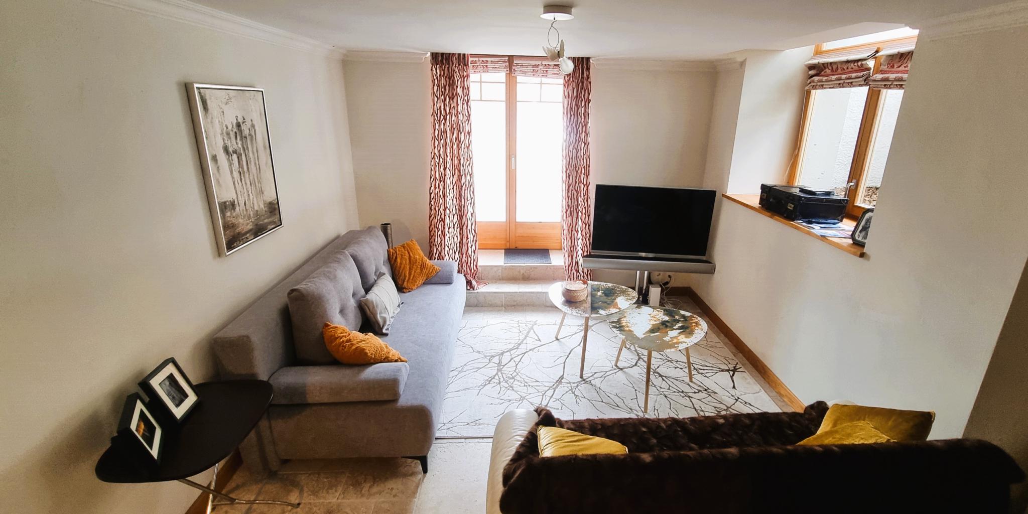 - a spacious living room and open kitchen area, also with direct access to the terrace/garden. The kitchen is very well laid out, with modern and branded equipment.