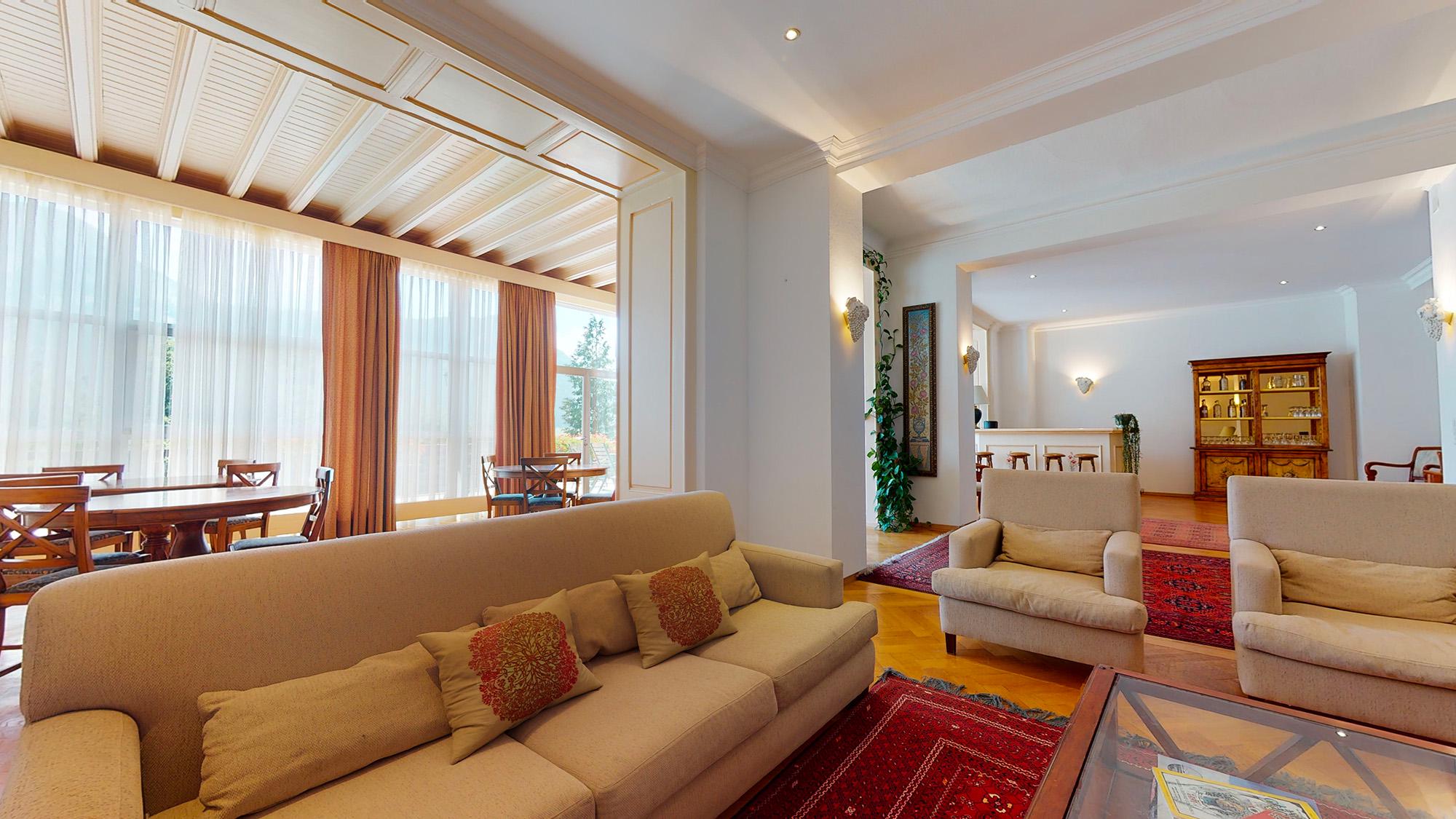 - a party room equipped with bar, kitchen, a lounge area with fireplace and a large TV and a huge terrace to admire the landscape with your guests.
