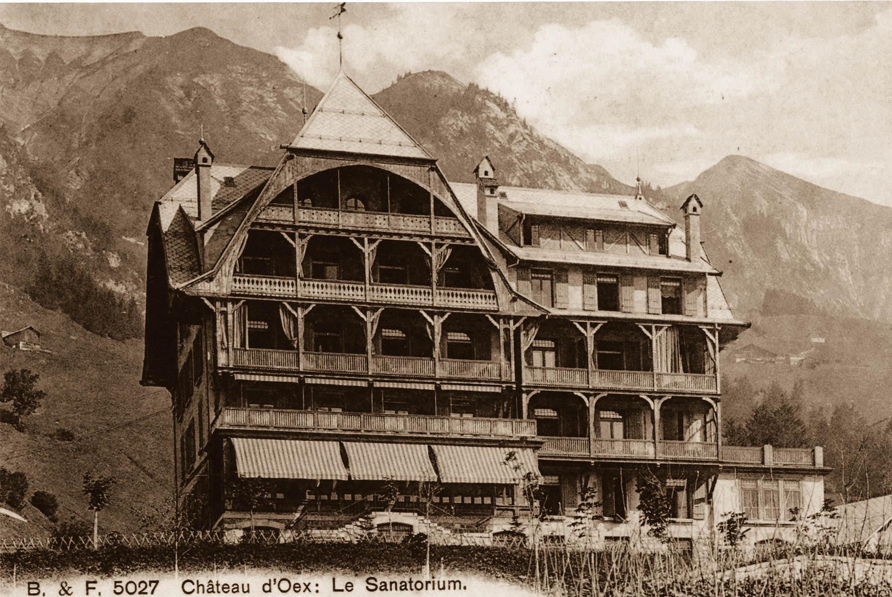it offers a magnificent view of the surrounding mountains as well as the Protestant church of Château-d'Oex and its old watchtower, symbol of the town.